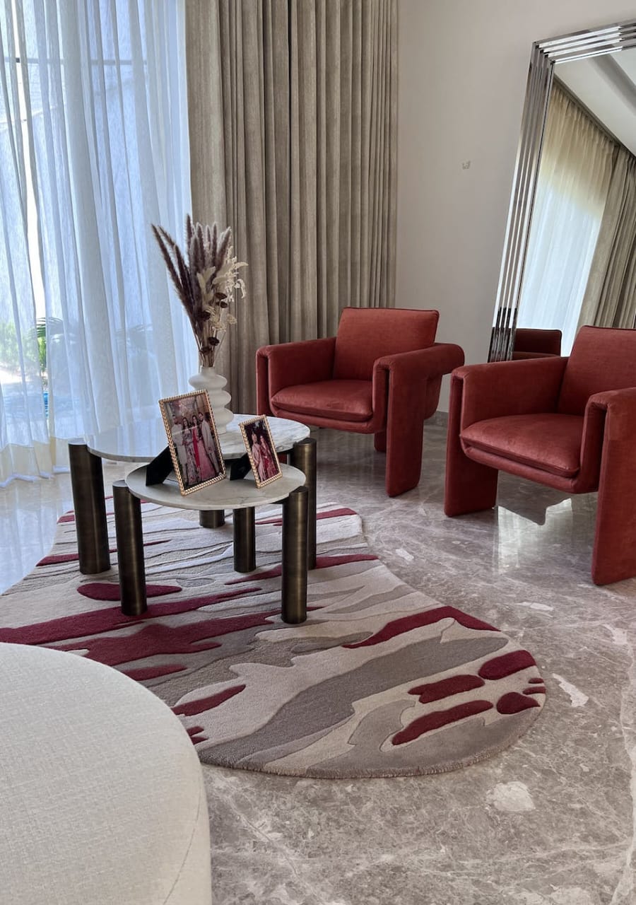 Abstract Irregular Hand-Tufted Wool Rug – Red & Beige Tones