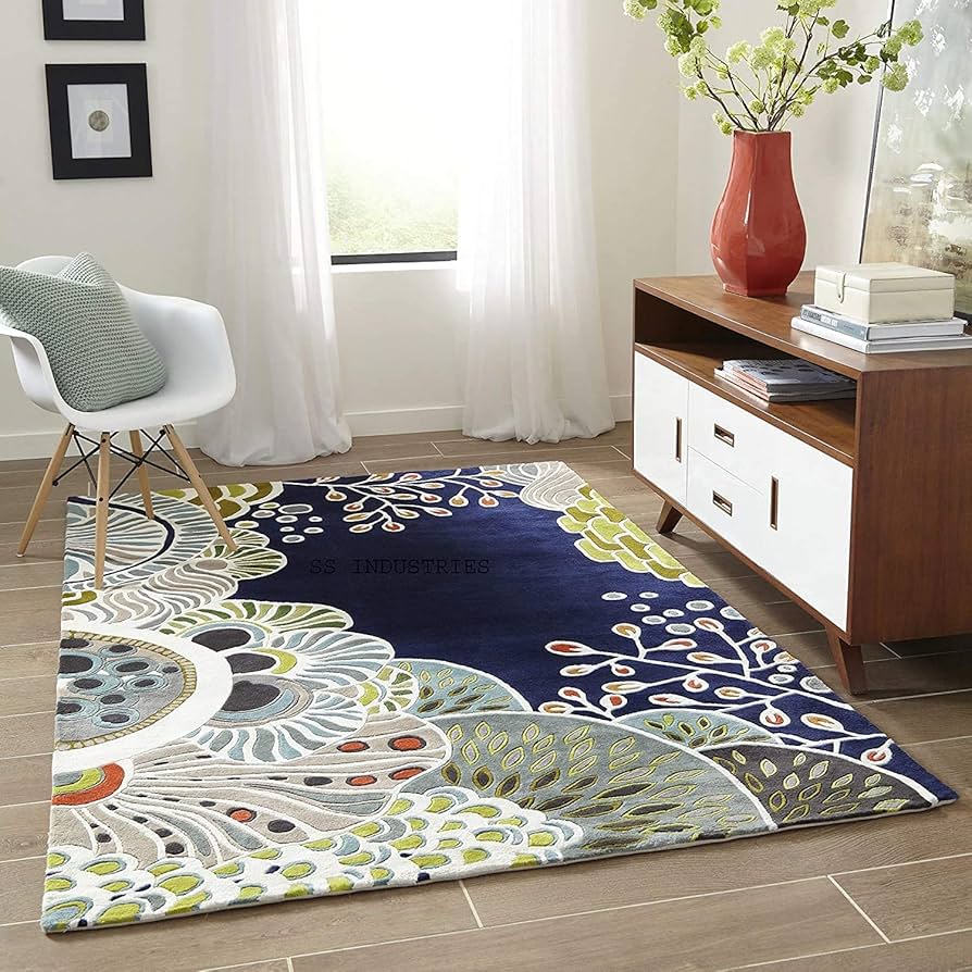 • Silk Floral Carpet – Navy Blue & Green Rug