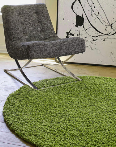 Green Solid Round Shaggy Rug – Ultra Soft Modern Carpet.