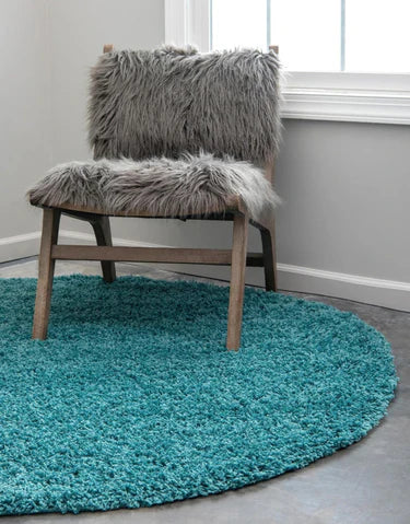 Turqoise Solid Round Shaggy Rug – Ultra Soft Modern Carpet.
